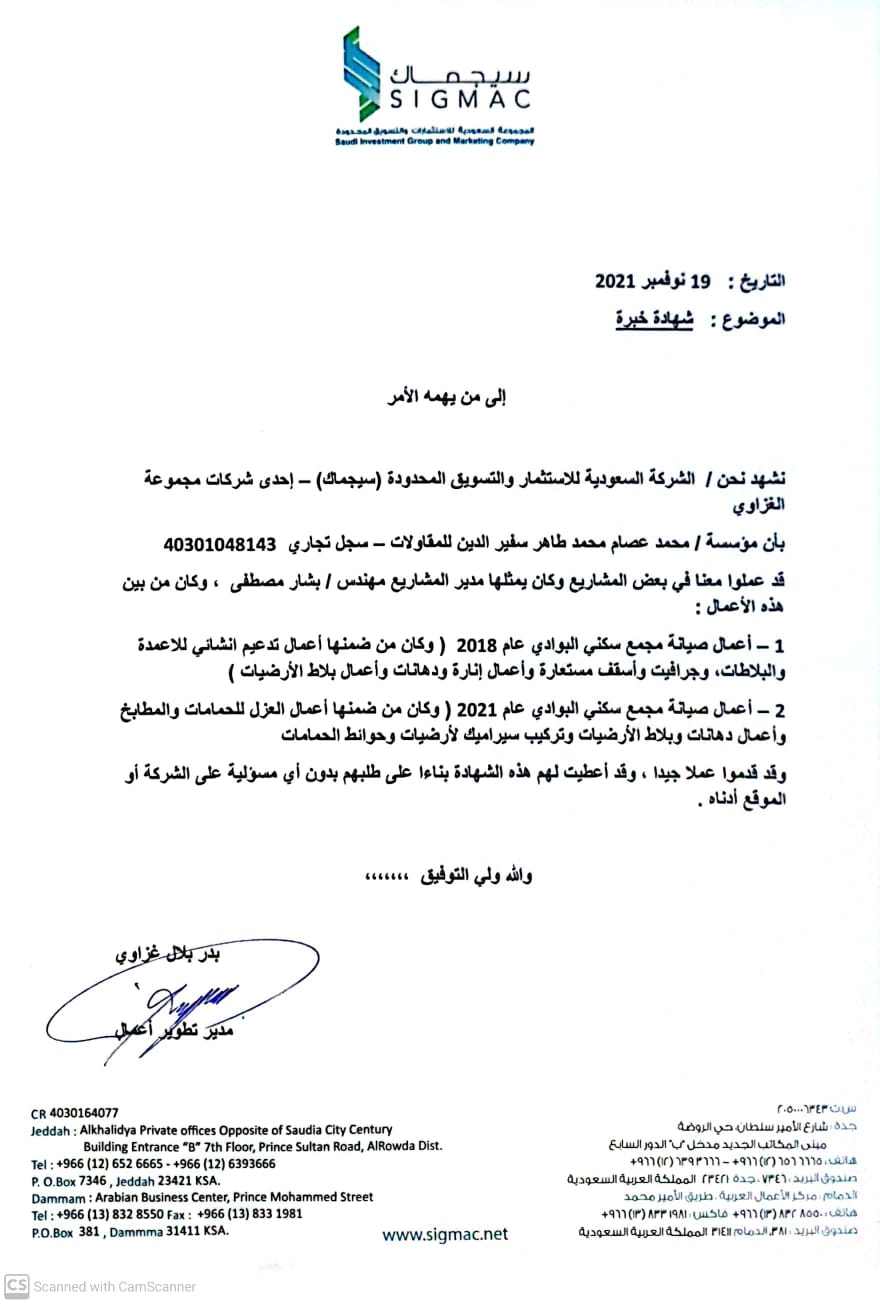 مشاهدة شهادة الشكرتصنيف المشروع